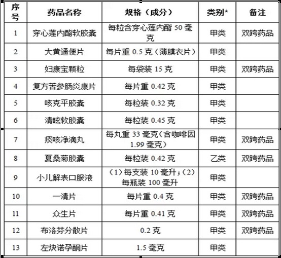 關(guān)于穿心蓮內(nèi)酯軟膠囊等13種藥品轉(zhuǎn)換為非處方藥的通知